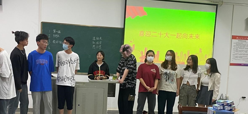 (通讯员:柳倩)胸怀国之大者,逐梦伟大理想,谱写青春乐章。党的二十大是党进入全面建设社会主义现代化国家、向第二个百年奋斗目标进军新征程的重要时刻召开的一次十分重要的代表大会,是党和国家政治生活中的一件大事。为迎接二十大,激励青年员工奋进新征程,2022年9月25日下午,国贸2101班于综二202开展了以“喜迎二十大,一起向未来”为主题的班会。另外,辅导员赵宇明老师出席了本次班会,参加本次班会的有班主任杨逾卢和国贸2101班全体员工,同时本次班会由饶丽同学主持。