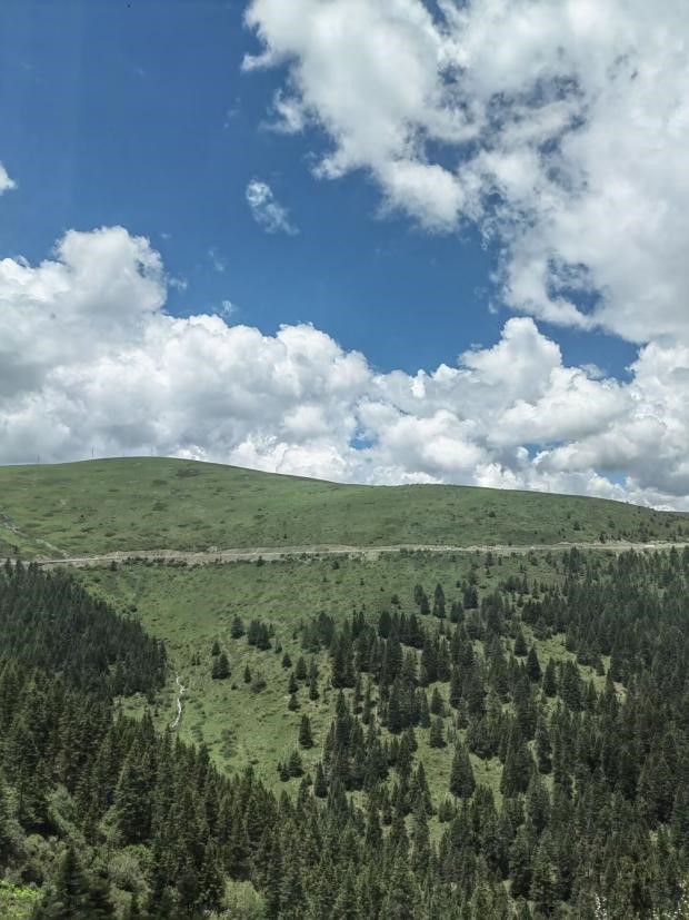 当然这趟旅行的最终地点是稻城亚丁景区。在出发前往景区的路上,起初是晴,后来转雨,接着就见不着雨滴了。高原的气候好像是晴朗、万里无云的,甚至是耀眼得让人睁不开眼的。进入景区之后需要坐一个多小时的大巴才能到起点,这时海拔已经大约有3000米了,在高原上必须要随时带着氧气罐以防不测。